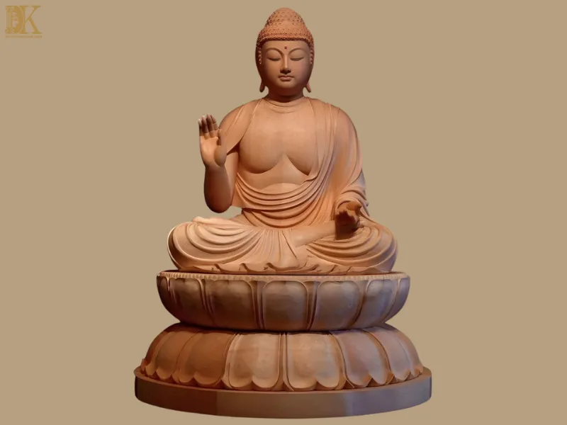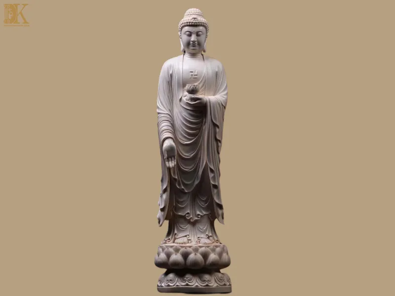 - Các chi tiết nhỏ như hoa văn y áo, bàn tay ấn pháp mềm mại và sống động.
