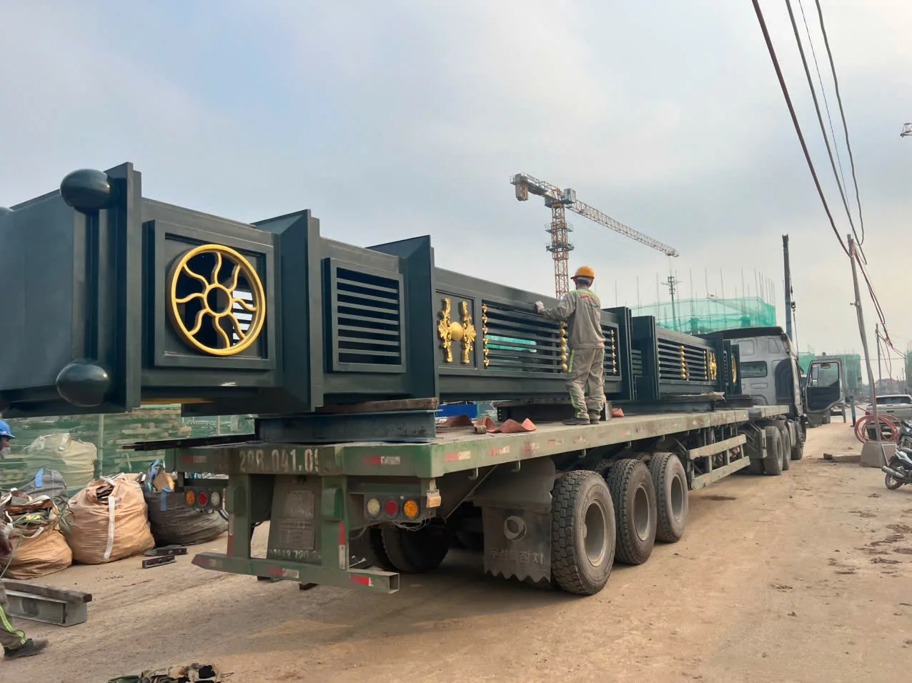 Sau khi gia công hoàn tất, toàn bộ cấu kiện được vận chuyển bằng xe siêu trường, siêu trọng đến công trường tại Đông Anh. Tại đây, quy trình lắp đặt diễn ra theo thứ tự: