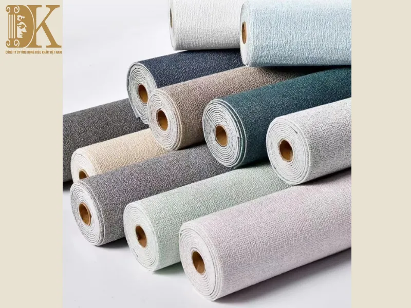 - Lớp keo dán: Là lớp keo dán sẵn ở mặt sau, chỉ cần bóc ra và dán lên tường, rất tiện lợi khi thi công.