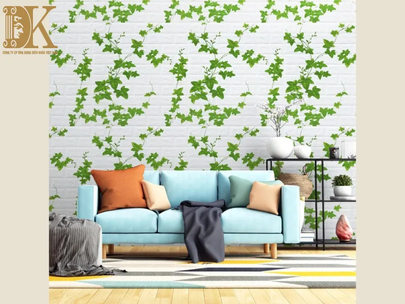 - Phòng khách: Có thể chọn họa tiết 3D hoặc giả đá để tạo sự sang trọng.