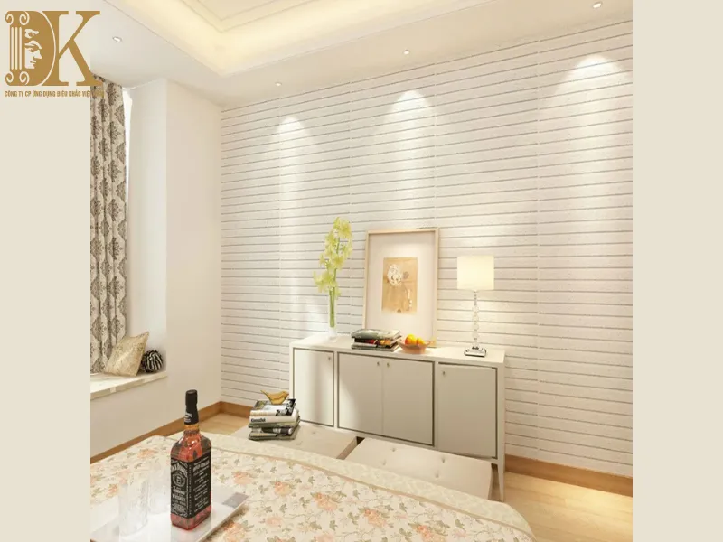 - Phong cách hiện đại: Ưu tiên xốp dán tường màu trung tính như trắng, xám, kem, kết hợp họa tiết đơn giản như vân gỗ, gạch 3D.