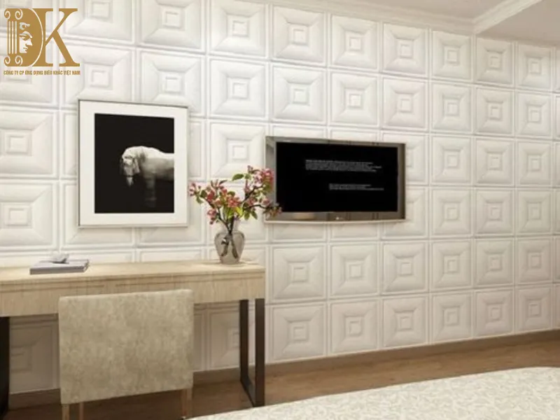 6. Trang trí phòng bằng xốp dán tường màu trắng