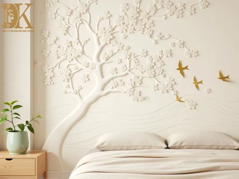10. Mẫu trang trí phòng bằng xốp dán tường vân hoa nổi