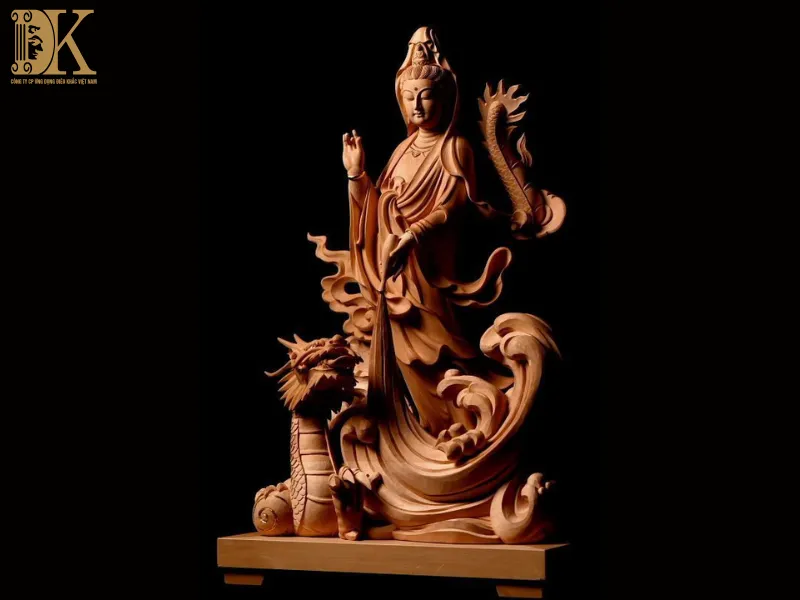 Tượng Quan Âm cưỡi rồng hoặc đứng trên sóng nước